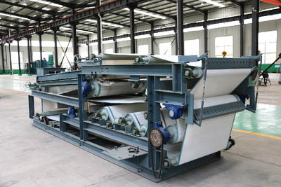 带式污泥脱水机由滤带、辊压筒、滤带张紧系统、滤带调偏系统、滤带冲洗系统和滤带驱动系统构成。作机型选择时,应从以下几个方面加以考虑: